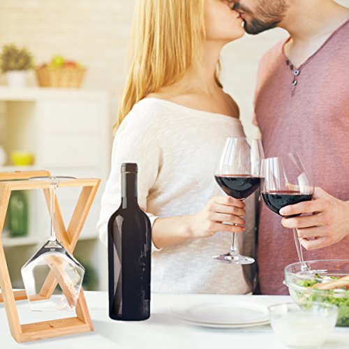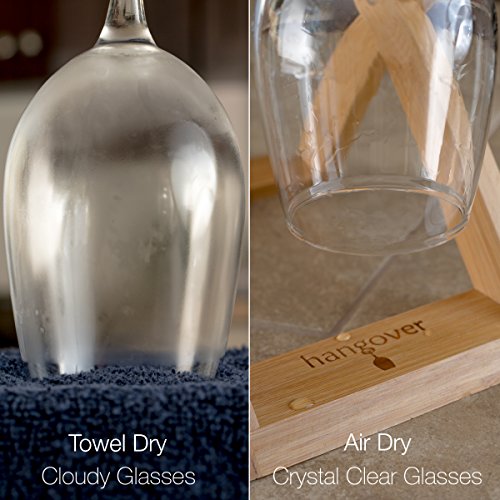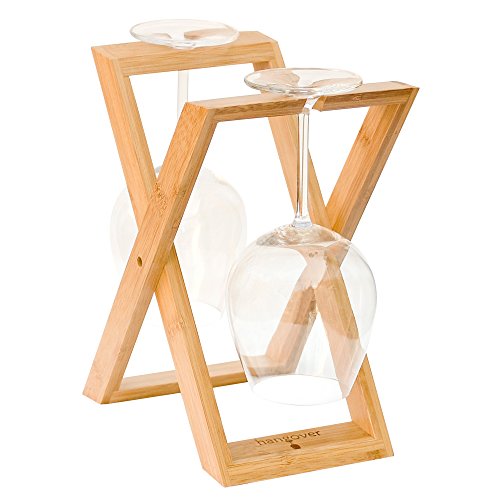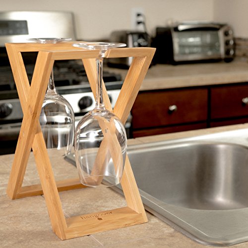 BEAUTIFUL DESIGN: Natural bamboo, detailed finish and classy style to match wide variety of decor. 2 slots for hanging stemware of many varieties and sizes. Holds 2 regular size wine glasses with good spacing. Sturdy design Protects your stemware while air drying to prevent fogging or streaks and spots.
