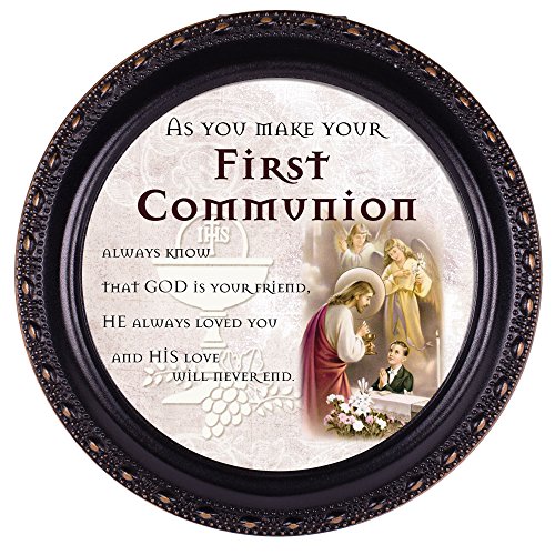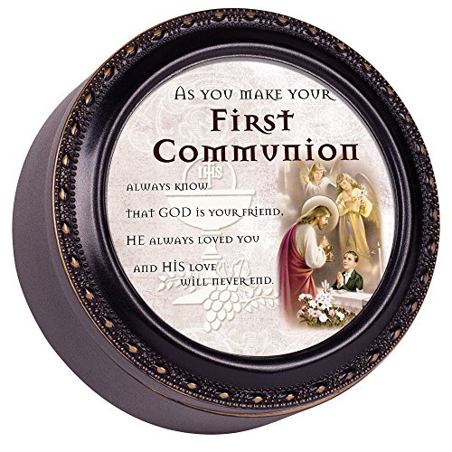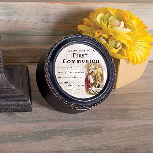 1St Communion Prayer Boy Distressed Black Inspirational Cottage Garden Tiny Round Treasure/Keepsake Box