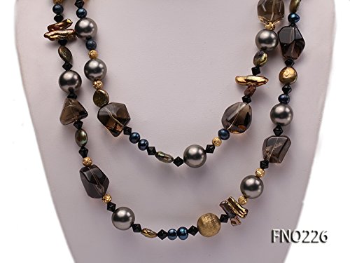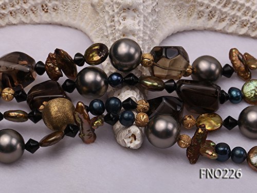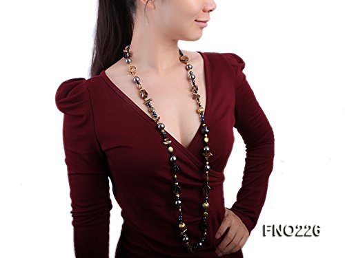 Description *A charming necklace crafted with one strand of freshwater pearls, decorated with golden jewellery fitting balls, and seashell pearl beads.