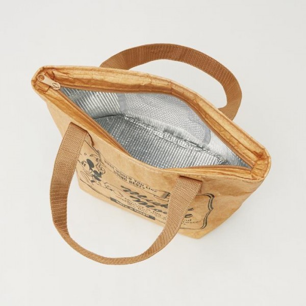 外側はおしゃれなワックスペーパー風、内側は保冷効果のあるアルミ蒸着フィルム。お弁当箱などを入れるのにぴったりなサイズの保冷トートバッグです。 |
