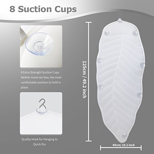 - SUPER GRIP SUCTION CUPS: 8 Extra large powerful suction cups really grips your surface! Designed to stay put on any smooth surface. With convenient built-in hanging hook for easy drying or storage.