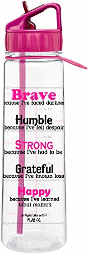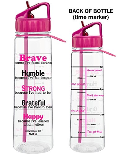 Motivational "Brave Because I've Faced Darkness" Slimkim II Water Sports Bottle | Time Marker with Measurement Goals and Inspirational Quotes 30 Oz Perfect for Breast Cancer Survivors