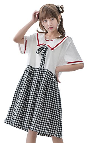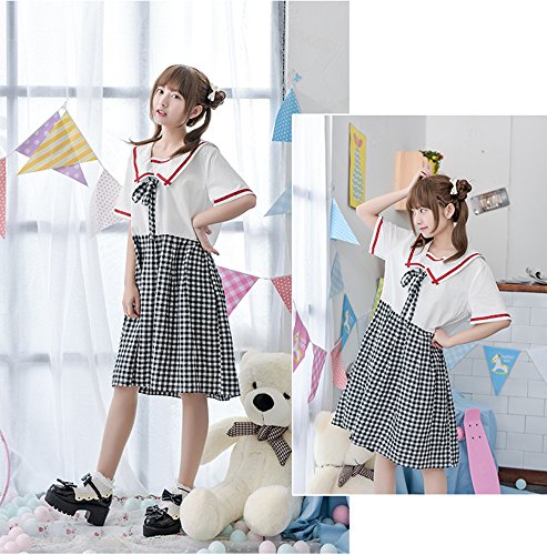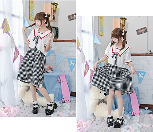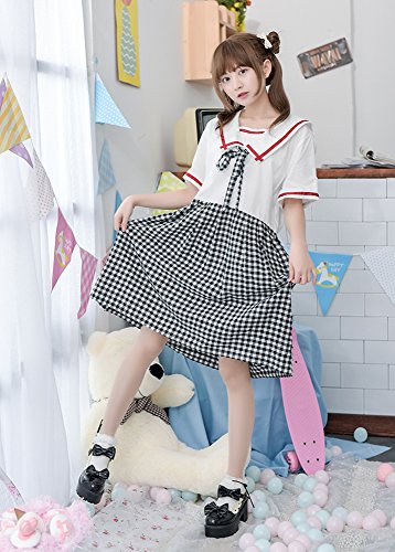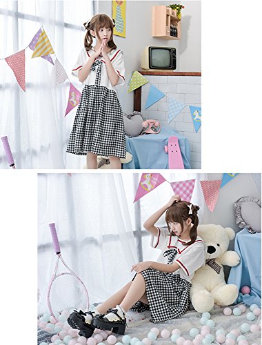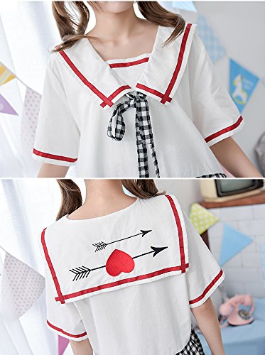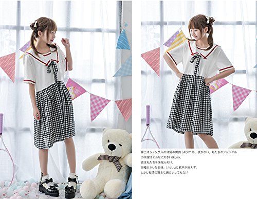 -. Title : キャンディ少女 ロリータ系 レディース ワンピ 森ガール ドレス チェック柄 セーラー襟 ハート 刺繍 可愛い 半袖 ホワイト