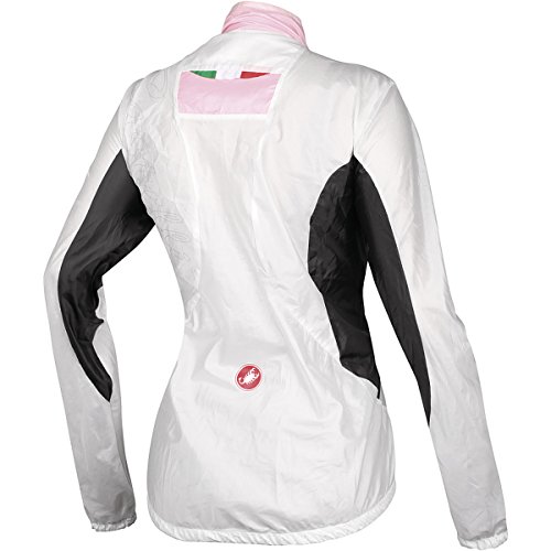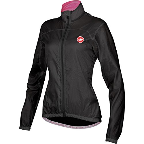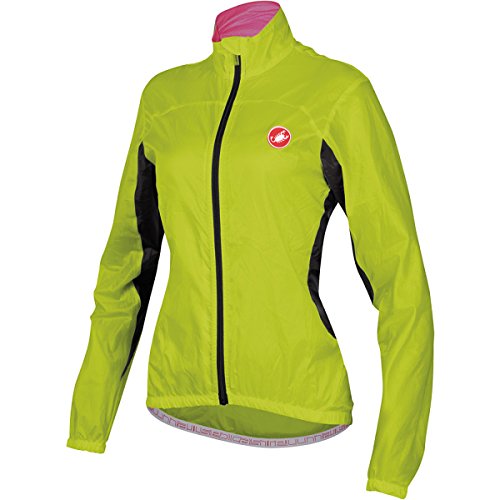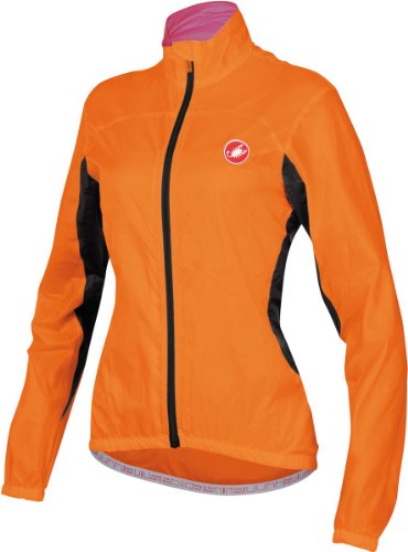 Studio : Castelli Publisher : Castelli Product Description Almost as bad as getting caught in a storm minus a jacket is riding in a shell that retains body heat and moisture. Castelli's Velo Women's Jacket is a lightweight, portable solution that features a breathable fabric and ventilation ports to prevent a soggy mess. Sewn from Forcefield fabric, an exceptionally lightweight 30-gram, ripstop material that is windproof and water-resistant, the Castelli Velo Jacket is so light that you'll barely notice it's there. Additionally, the Women's Velo jacket is highly breathable and features covered ventilation ports on the sleeves and the back to exhaust heat and to prevent getting drenched from the inside-out. It should be noted that while the Velo is ideal for drizzle or windy conditions, it does not feature fully taped, waterproof seams -- if you need to keep a deluge at bay, take a look at Castelli's rain jackets. Cut with a longer back, the Velo jacket keeps road spray from dampening the ride. A high mesh collar keeps precipitation from running down the neck, and when the sun comes out, the collar turns into a pocket to store the entire jacket. It only takes up half a jersey pocket, so it's perfect to carry on "what if" weather days. Castelli added reflective logos and back tabs to the Women's Velo Jacket to increase low-light safety. The Castelli Velo Jacket - Women's is available in five sizes from X-Small to X-Large and in the colors Black, Lime, and Orange Fluo. 0