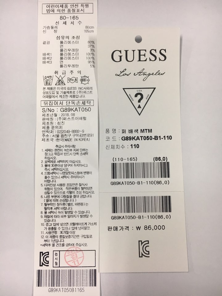 제조자 : 퍼스트어패럴