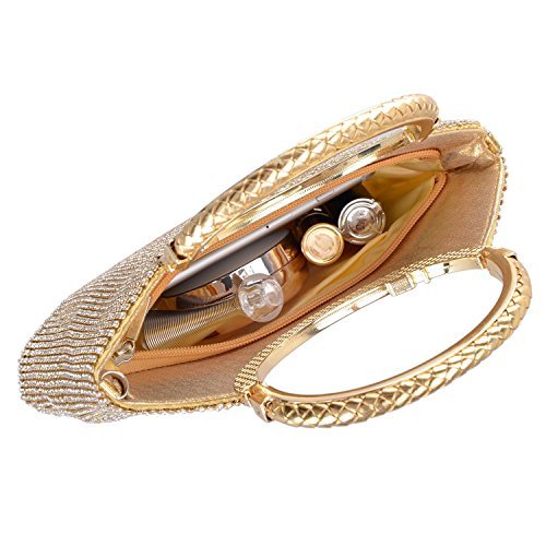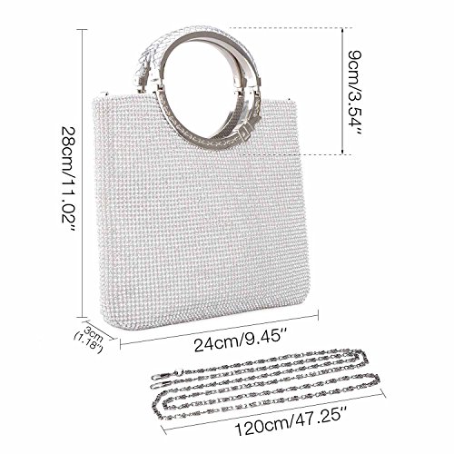 Product Description Features: Size: 9.84"(L) * 1.18"(W) * 8.66"(H) Material:Dazzling rhinestone, high quality soft satin lining,light gold / silver plated metal frame with bow-shaped clasp which can be opened and closed smoothly Occasions:wedding/prom/party/black tie/show/cocktail/night out Fit enough:cell phone/small wallet/mirror/lipstick/makeups/cash/credit card/car keys