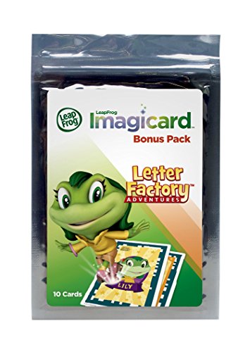 -. Feature : Works with LeapFrog Imagicard Letter Factory Adventures game / Includes 10 new cards to boost gameplay / Pack features 6 rare character cards and 4 cards that unlock new stickers in Photo Fun