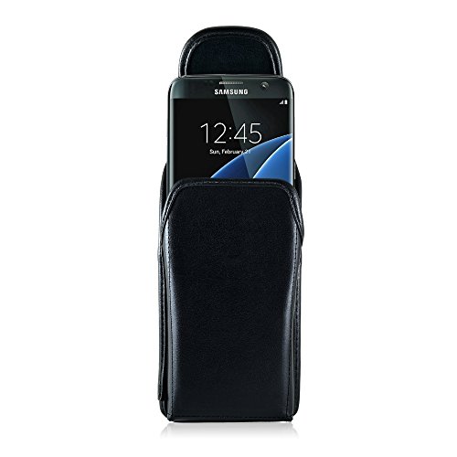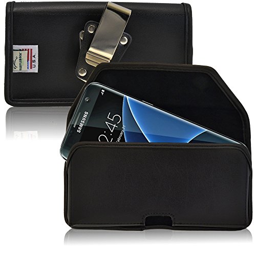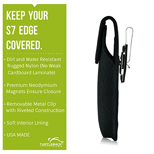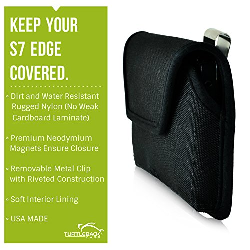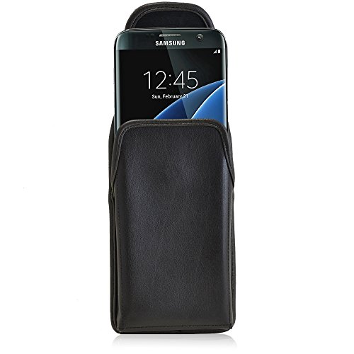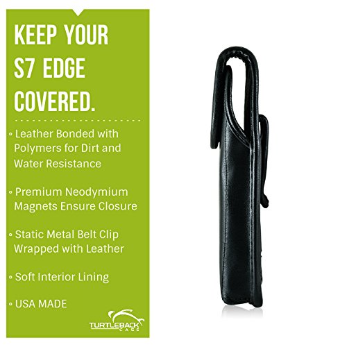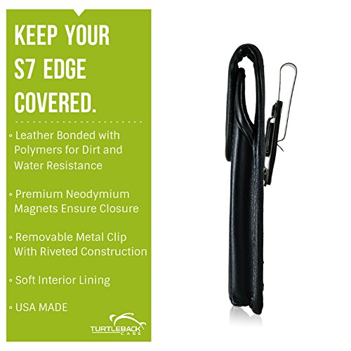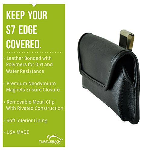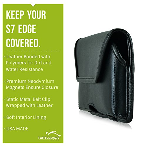 [Description] Premium bonded leather materials QUALITY PHONE CASE POUCH: Made with high-quality dirt resistant Bonded Leather pouch for Galaxy S7 Edge Lined with soft felt for added protection against scratches DURABLE HOLSTER CASE: Can accommodate the naked Galaxy S7 Edge phone or with a Slim Case (WILL NOT FIT NON-EDGE S7) MAGNETIC FLAP CLOSURE CASE: Ergonomically designed to securely keep your Galaxy S7 Edge in place while inside the pouch HEAVY DUTY METAL HOLSTER BELT CLIP: Leather covered metal clip designed to tightly clip holster case in belt securing and protecting your device with every movement Made in the USA. Interior dimensions are 6.1 X 3.1 X 0.35 in.