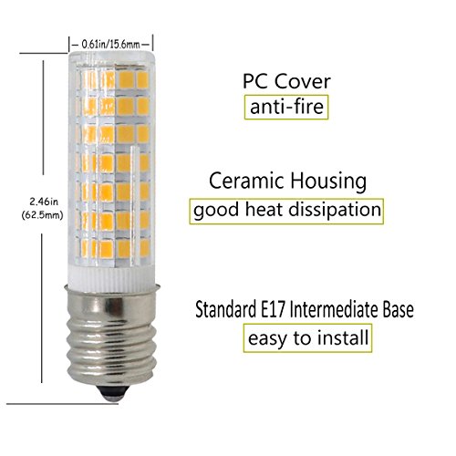 E17 Led, Dimmable E17 Led Bulb, E17 Intermediate Base ,88×2835SMD,580LM ,6W E17 Bulb(60W Halogen Bulb Equivalent), Microwave Oven Appliance, AC120V, 2-PACK … (Warm White)