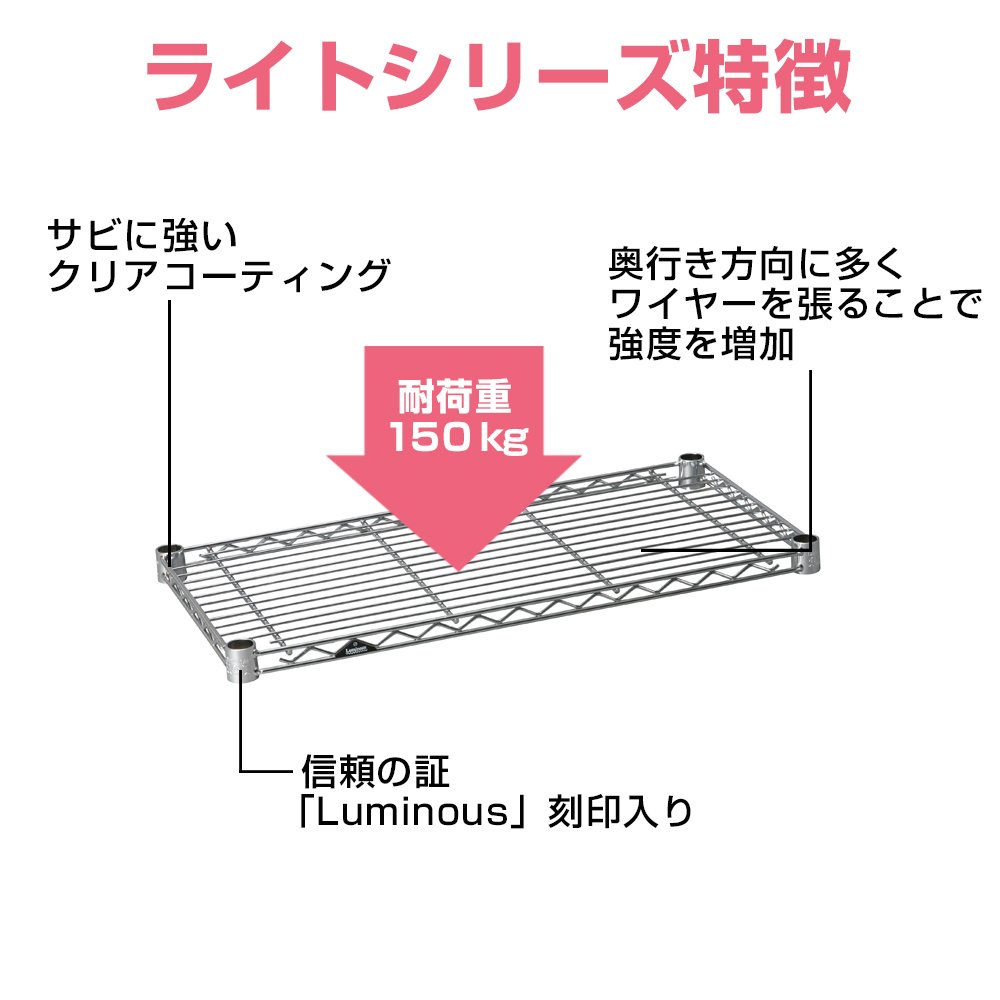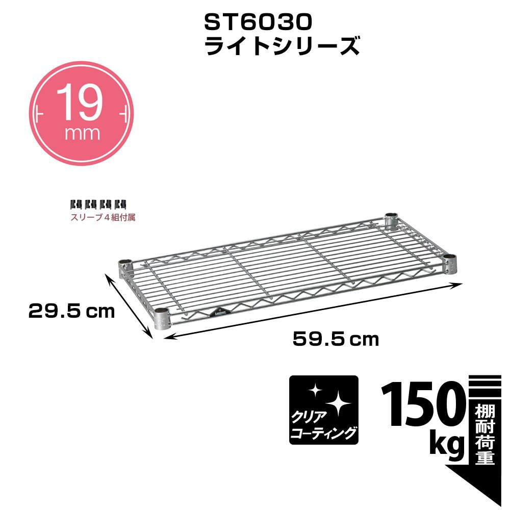 Luminous pole diameter 19mm parts for shelf plate steel shelf (load capacity 150kg) 1 sheet wire width direction (with sleeve) width 59.5 × depth 29.5cm ST6030