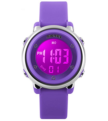 SKMEI 키즈 손목시계 아이 손목시계 디지털 스포츠용 방수7 채LED날짜 요일 알람 스톱워치 사내 아이 소녀 귀엽 기프트 여름 퍼플