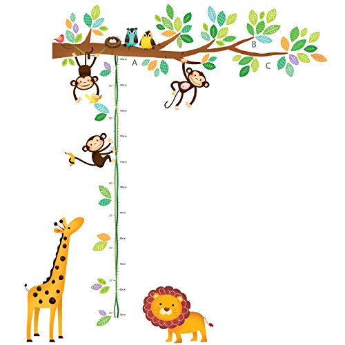 -. Title : Decowall, DW-1402, Monkeys and Animals Height Chart Wall Stickers