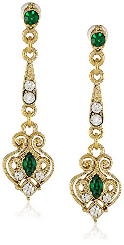 -. Title : Downton Abbey Gold-Tone Edwardian Filigree Simulated Emerald Drop Earrings