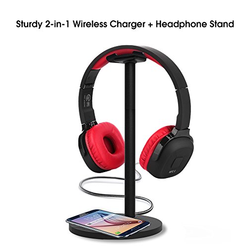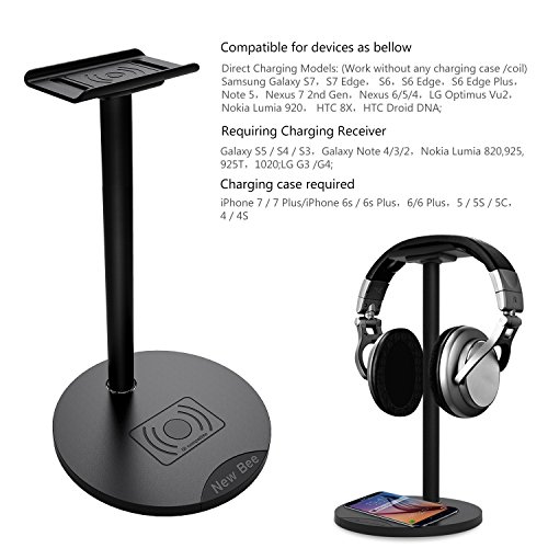 USB Headphone Stand New Bee Sturdy 2-in-1 Wireless Charger + Headset Stand for Samsung S7/S7 Edge/S6/S6 Edge and other Mobile Phone with Standard Qi-enabled devices - Black
