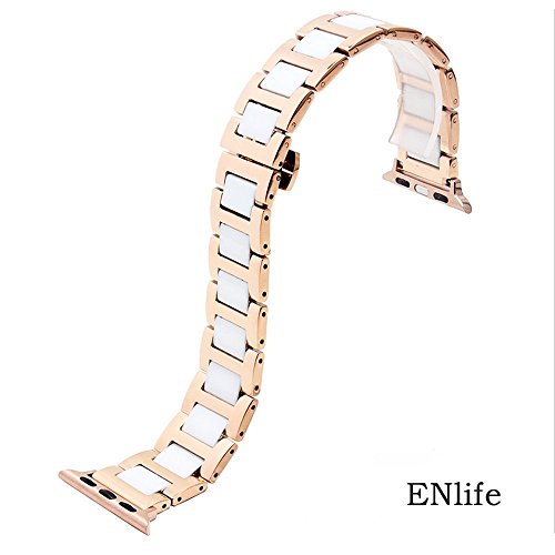 -. Title : Apple Watch Band,ENlife 42mm Stainless Steel Ceramics Replacement Link Bracelet Strap Classic Wristband Double Button Butterfly Buckle for Apple Watch & Sport & Edition version(42mm Rose gold)