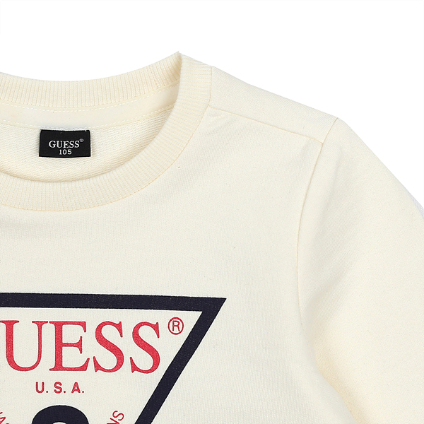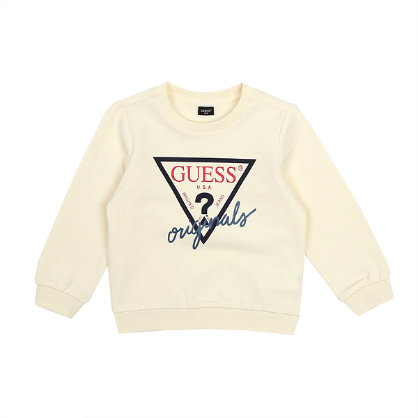 무난하게 코디하기 좋은 기본핏의 맨투맨으로 게스 오리지날 삼각 아트웍의 컬러감이 돋보이는 아이템입니다.