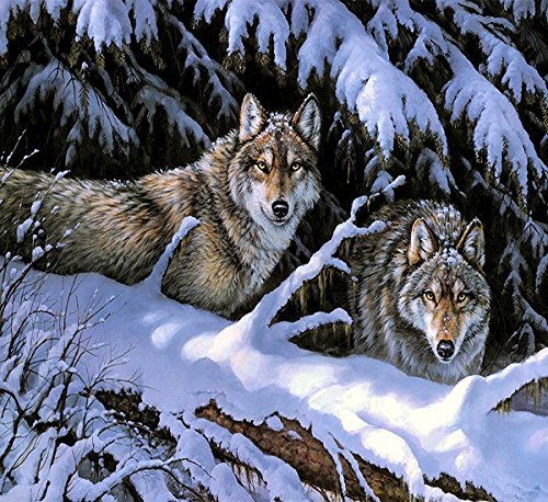 [ New Release, Wooden Framed or Not ] Diy Oil Painting by Numbers, Paint by Number Kits - Snow Wolf 16*20 inches - PBN Kit for Adults Girls Kids White Christmas Decor Decorations Gifts