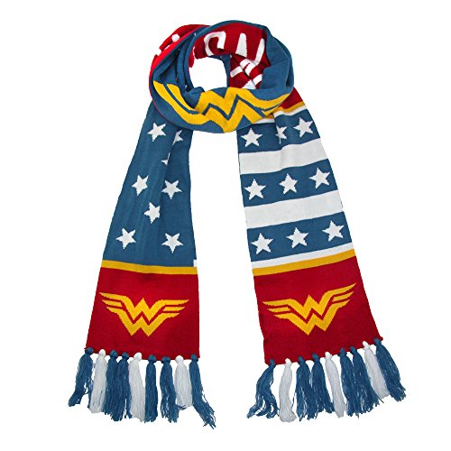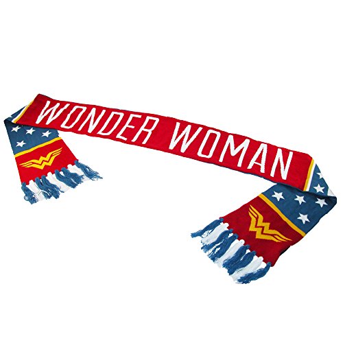 Studio : DC Comics Publisher : DC Comics Binding : Apparel Product Description Bundle up in superhero swag that even villains would envy! Before you leave the house, don't forget your Wonder Woman Jacquard Scarf. The stars, Wonder Woman logo, and tassels will make you look like you just stepped out of the pages of a DC comic book. Wear this scarf when you're heading to the coffee shop to hang out with your friends or when you're meeting up with the Justice League to make sure all bad guys are off the streets! - Scarf 0