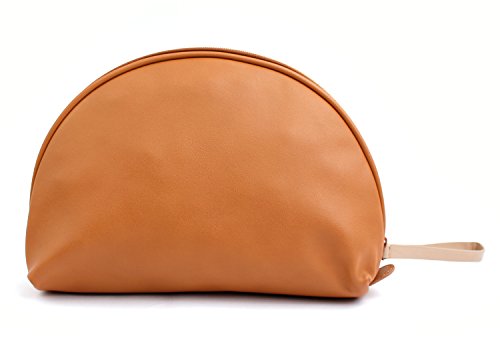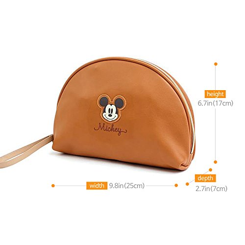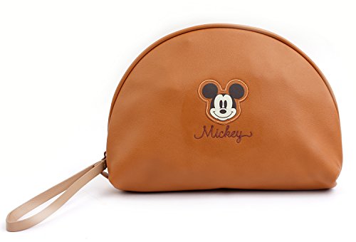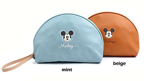 Disney Mickey Mouse Half Moon Leather Clutch Hand Bag Pouch with Gold Zipper Closure (Beige)
