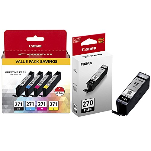 Canon PGI-270 Standard Yield Pigment Black with 0390C005 (CLI-271) 4-Color (BK/C/M/Y) Ink Cartridge Set