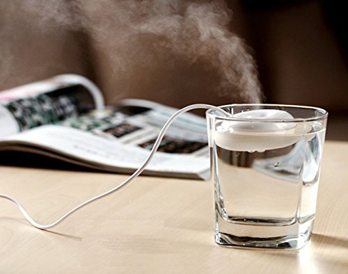 Mini Plastic USB Humidifier, Office Home Travel Portable Waterproof Floating Round Dount Like Air Fresher from Hoocozi, 1Pce, White, Size 2”