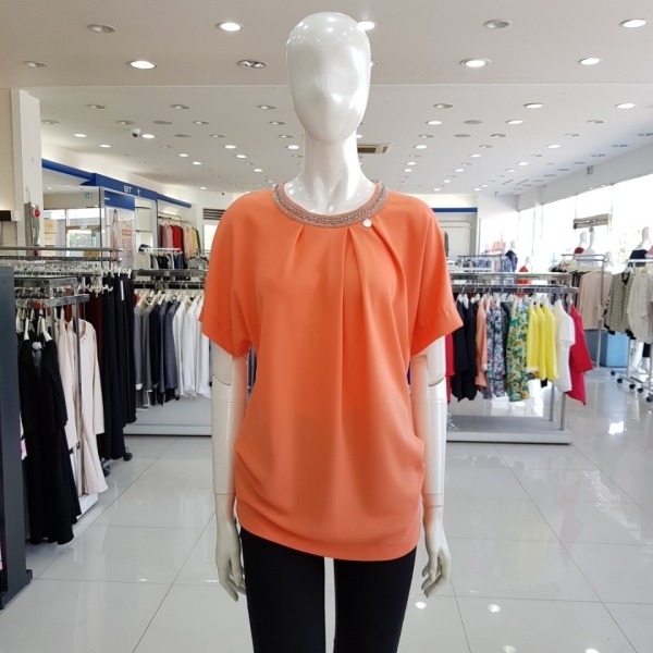 넥라인 셔링 블라우스-CA7U4-WRB220-210오렌지