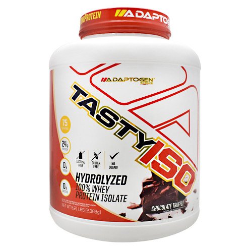 ReleaseDate : 2017-10-18 Studio : KEE HOLDINGS Inc. Publisher : KEE HOLDINGS Inc. Binding : Health and Beauty Product Description 24g Protein. 0g Sugar. 0g Lactose. lactose Free. Gluten Free. No Sugar! Hydrolyzed 100% Whey Protein Isolate. Advanced Delivery, Incredible Taste. Adaptogen Science has finally developed what we consider the best tasting 100% Hydrolyzed Whey protein isolate on the market. The quality is attained within its processing which uses state-of-the-art "Cold processed technology" technique, resulting in virtually NO fat, sugar or lactose. Hydrolyzed whey protein isolate provides only the richest source of protein having the highest value (Bv), which means more protein is absorbed by your body rapidly. each serving (1 scoop) provides 24 grams of pure and most bio-available 100% whey protein isolate and has been hydrolyzed for even faster absorption and digestion. Hydrolysis converts large protein molecules into the smallest peptides (di and tri-peptides) so they can get more absorbed, is the fastest source of protein your body can get it. Best protein available on the market today. each serving delivers 5.5g of BCAAs including 2.6g of Leucine and all intact micro fractions found in a quality Whey protein isolate. Tasty ISO is manufactured using the most advanced processing practice which ensures protein quality by weight. We guarantee 100% that what is on the label is in the product. Best Tasting ISO On the Market. By Far. 0