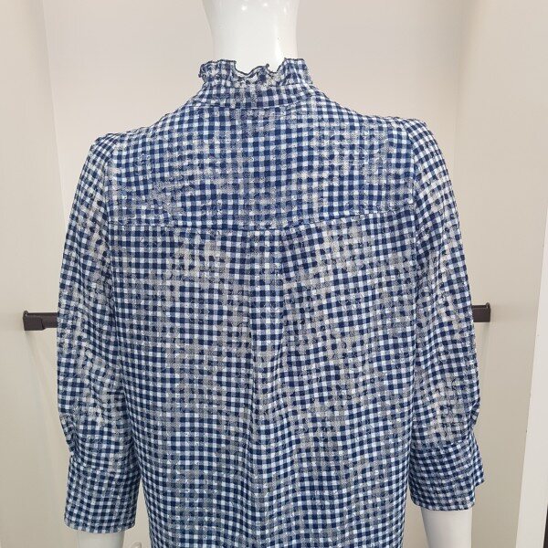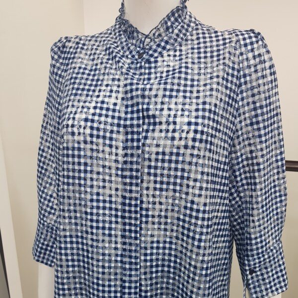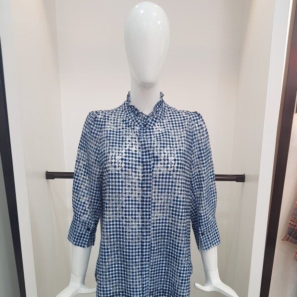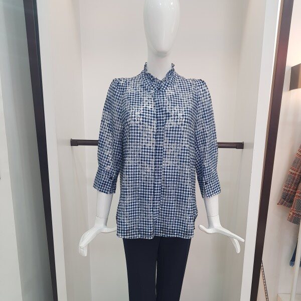 레이스 소재에 신축성좋고프린트를 찍은 블라우스
