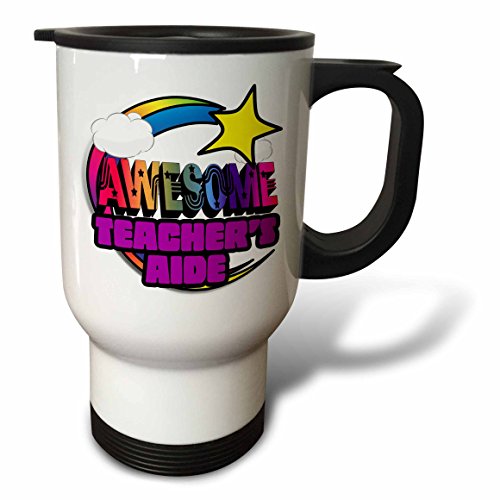 3dRose tm_201426_1 Shooting Star Rainbow Awesome Teachers Aide-Travel Mug, 14 oz, Stainless Steel, White
