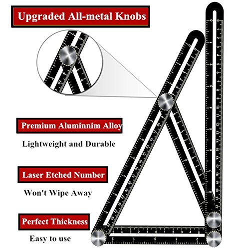 - STURDY ALUMINUM ALLOY MATERIAL: Lugsh easy universal angle ruler is made of premium aluminum alloy, which is extremely durable, resistant to scratch and corrosion etc. You are no longer afraid of breaking your layout tools even if you drop it a far distance.