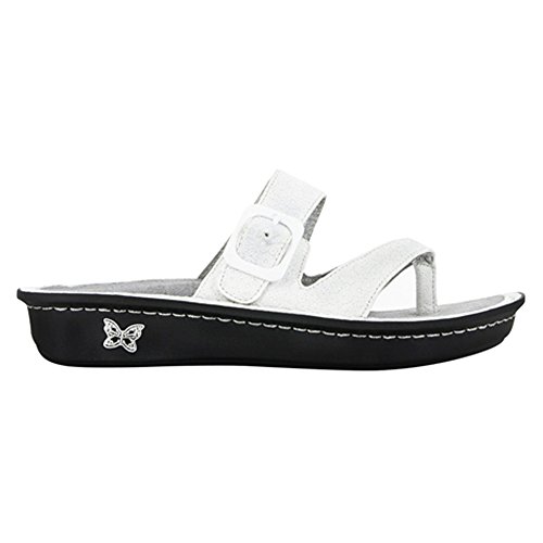 Take it easy with the Alegria Valentina thong-style sandal. The supple leather upper of this women's flip flop rests atop a a leather-covered latex and memory foam footbed for cushioned comfort. The anatomically correct insole is removable to accommodate custom orthotics.Feature