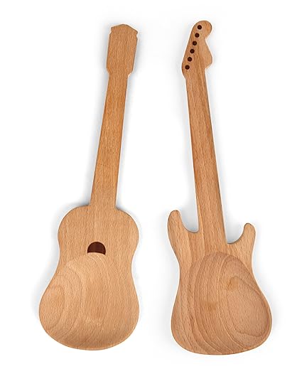 [Product Information]- Acoustic and electric guitar shaped wooden spoons