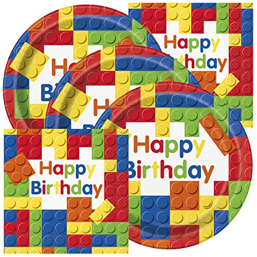 Colorful Building Blocks Birthday Party Plates and Napkins (Serves 16)