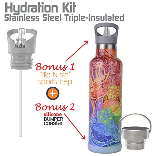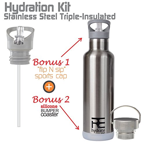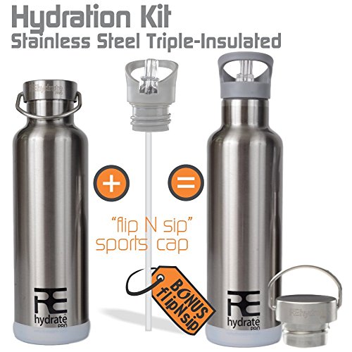 3)?Included (1) Insulated Double Wall Water Bottle (1) Stainless steel cap (1) Sip n Go Sports Cap