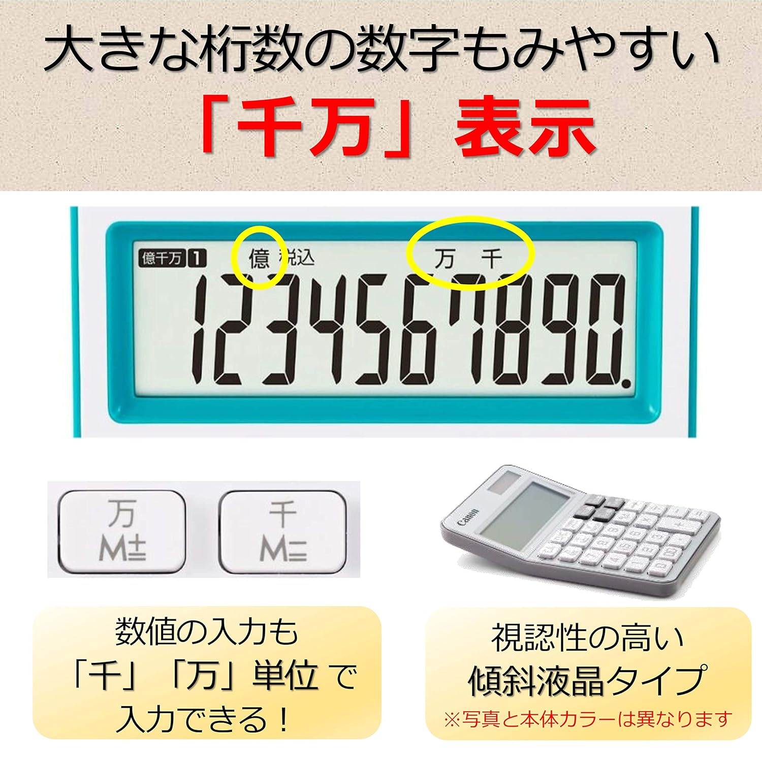 製品概要:華やかなホワイトとのツートンカラー。10桁ミニ卓上電卓。