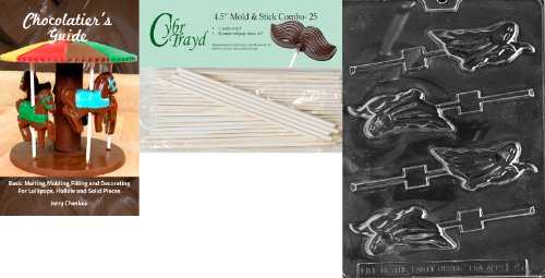 Cybrtrayd 45St25Bk-H075 'Ghost Lolly' Halloween Chocolate Candy Mold with 25 4.5-Inch Lollipop Sticks and Chocolatier's Guide