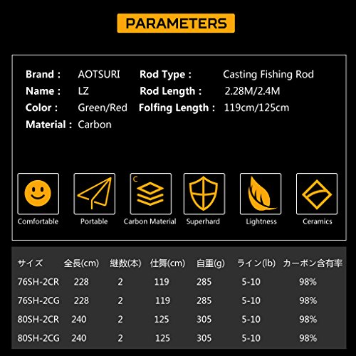 원본상품명: AOTSURI(アオツリ) ロッド カ?ボン製 炭素 Fujiガイド HVF スピニング 高感度 ?量 76SH レッド