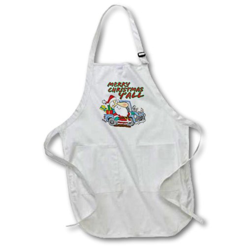 3dRose Merry Christmas Yall Redneck Santa - Medium Length Apron, 22 by 24-Inch, with Pouch Pockets (apr_104258_2)