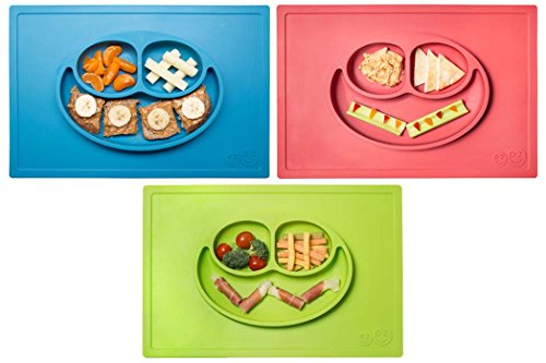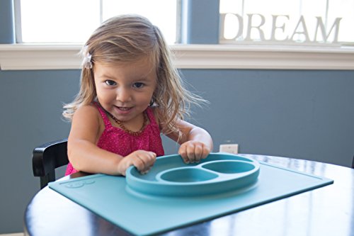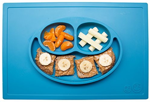 ezpz Happy Mat - One-piece silicone placemat + plate (Blue)
