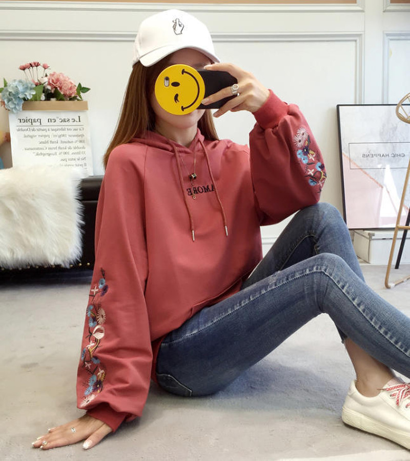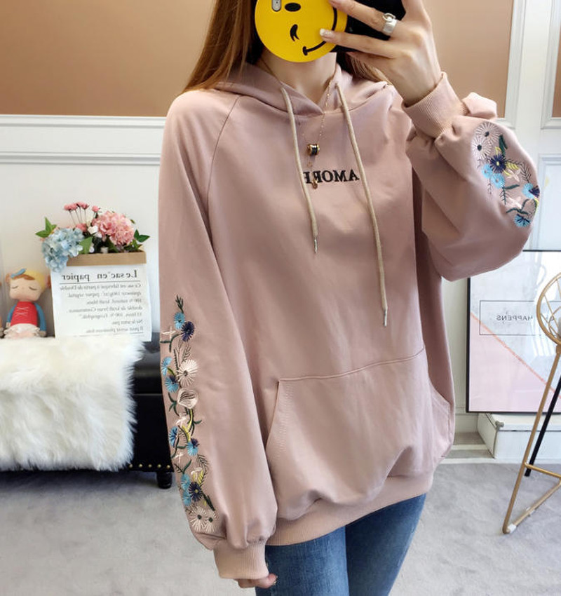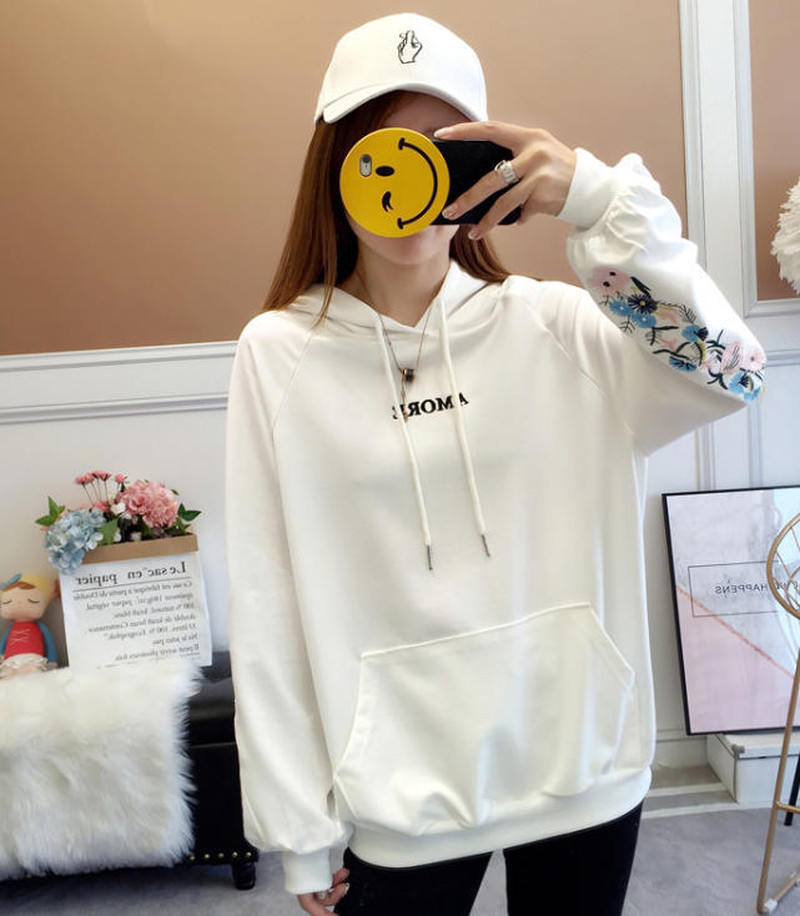 ♢ポイント♢ 袖部分の花柄が女の子らしいパーカーです。
