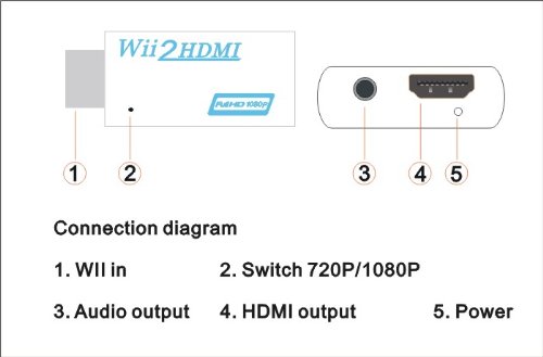 Studio : Neewer Publisher : Neewer Binding : Electronics Product Description This Wii to HDMI converter for the Wii console outputs video and audio in full digital HDMI 720p or 1080p format and supports all Wii display modes (NTSC 480i 480p, PAL 576i). With just one HDMI cable, plug and play for true-to-life video/audio on your HDTV/monitor.