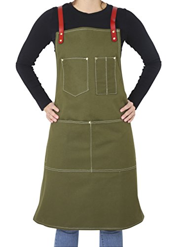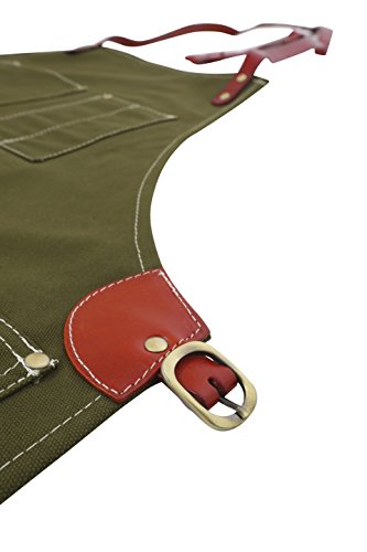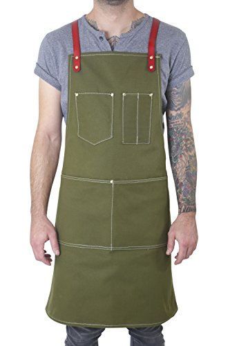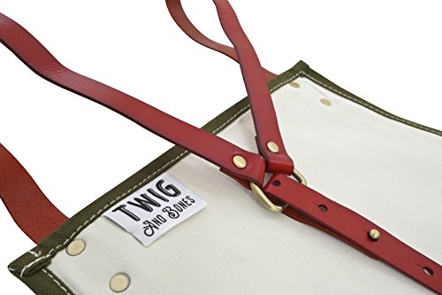 Twig and Bones Canvas and Leather Utility Apron with Pockets - Green