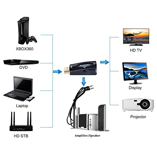 Tensun 1080p HDMI Male to VGA Female Video Converter Adapter with 3.5 mm Audio Cable for PC, TV, Laptops, PS3, Xbox, STB, Blu-ray DVD