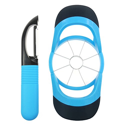-. Feature : 1.High quality stainless steel blades, sharp-edged, solid, easy to wash. / 2.Peeler to get rid of skin, apple corer slicer to get rid of the core and end up separator. / 3.Multifunctional fruit cutter tools. Nice for apple, pear or fruit into 8 pieces. / 4.Health product for passing FDA testing. / 5.Soft touch handle apple slicer and peeler, comfortable when you slicer your fruit.