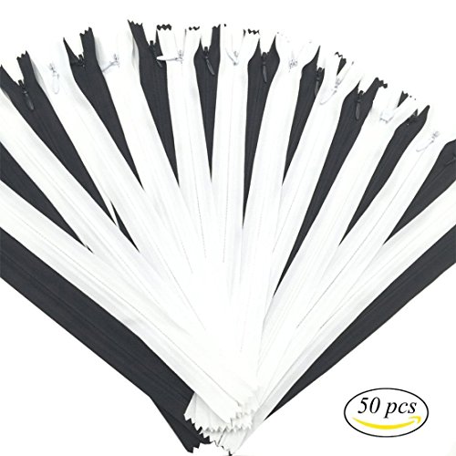 Mmei 50pcs 10Inch Nylon Invisible Zippers for Tailor Sewer Sewing Craft Crafter's Special (Black x 25 and White x 25)