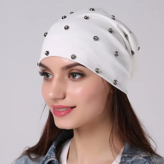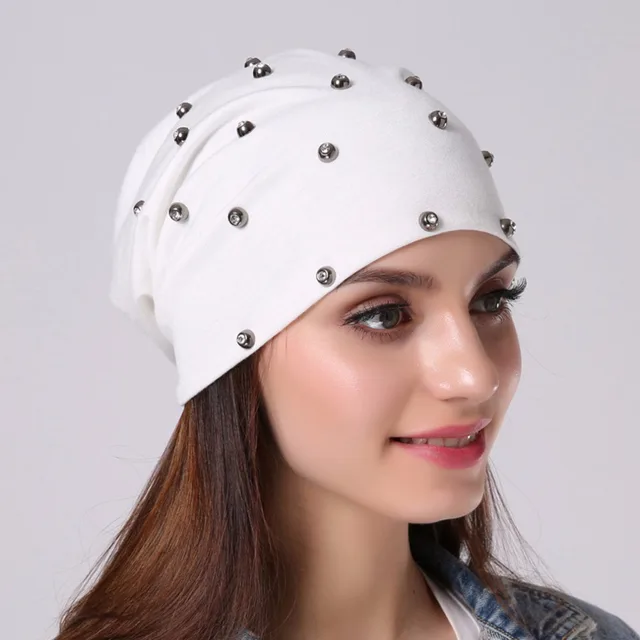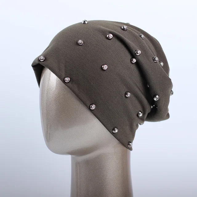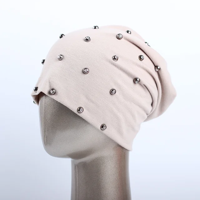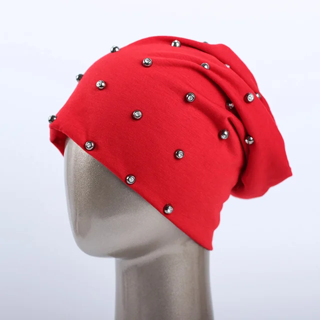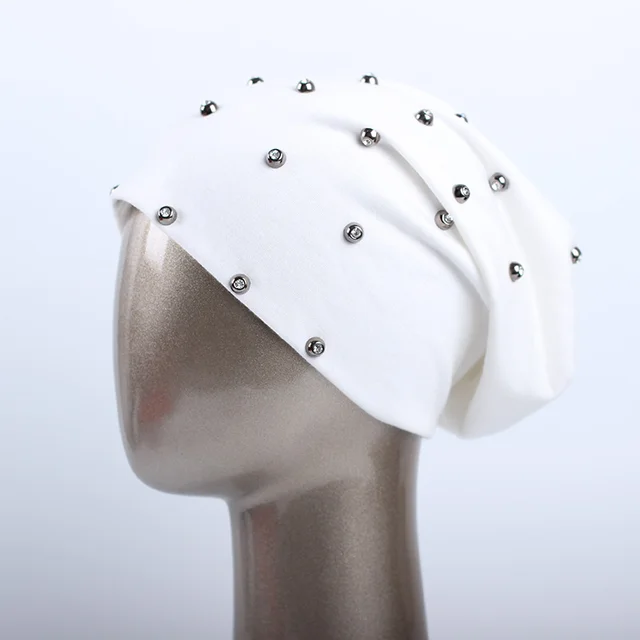 상품 내용 상품명: Geebro 브랜드 여성의 비니 모자 캐주얼 폴리 에스테르 스톤 편물 비니 샤인 다이아몬드 펑크 스타일의 남성 여름 얇은 비니 모자