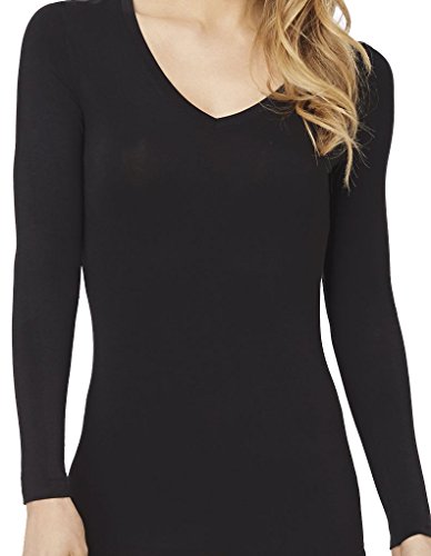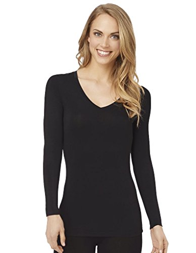 Cuddl Duds Softwear Black Modal Long Sleeve V-Neck Crew Top Medium