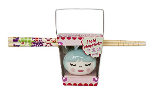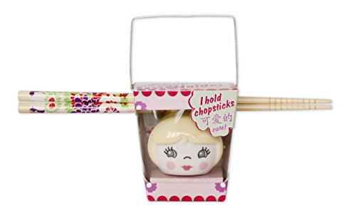 -. Feature : Chopsticks and holder / Holder made of ceramic material, chopsticks are wooden / Whimsical design / Great for parties and hostess gifts / Handwash recommended