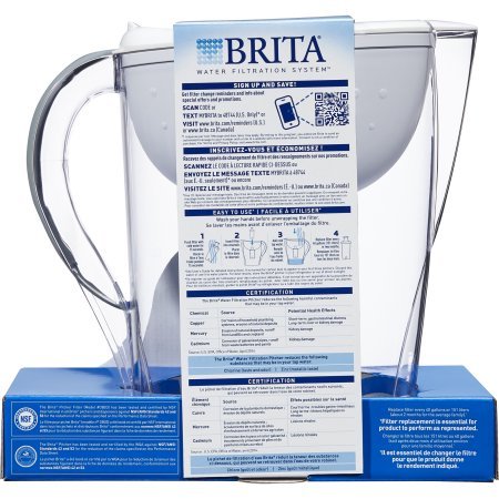 -. Feature : Large, Brita 10 cup water pitcher with 1 easy to change filter / Reduces chlorine taste and odor, copper, mercury and cadmium to deliver healthier, great tasting water / BPA free blue Brita pitcher with electronic filter change indicator, easy fill lid and comfort grip handle / Electronic filter indicator tracks when to change the water filter, every 40 gallons or approximately every two months / 1 Brita water filter can replace 300 standard 16.9 ounce plastic water bottles