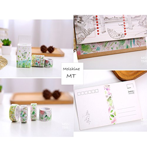 -. Title : Molshine 4-in-1 Decorative Japanese Washi Masking Adhesive Tape –Miss time Series - Collection, (1 roll 3cm X 3m , 3 rolls 1.5cmX3m ) for DIY (WCL11)